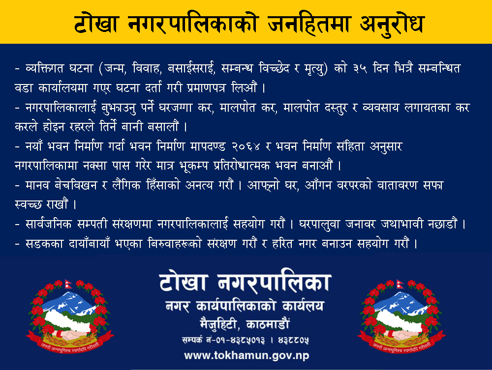 काठमाडौँ । काठमाडौं जिल्ला शंखरापुर नगरपालिका नाङ्लेभारे, वडा नं. १,..
