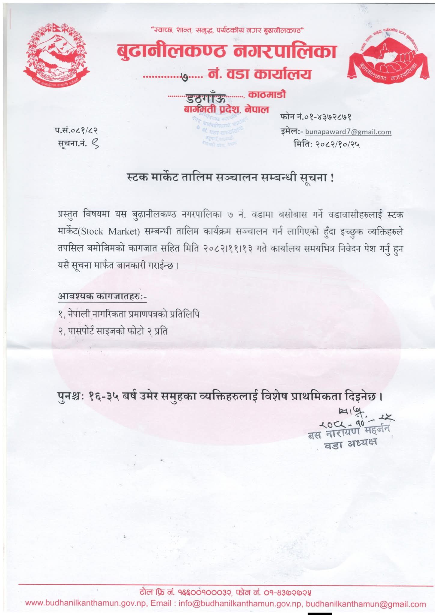 बुढानीलकण्ठ । युवाहरूको सीप विकास, प्रविधिमैत्री दक्षता अभिवृद्धि तथा..