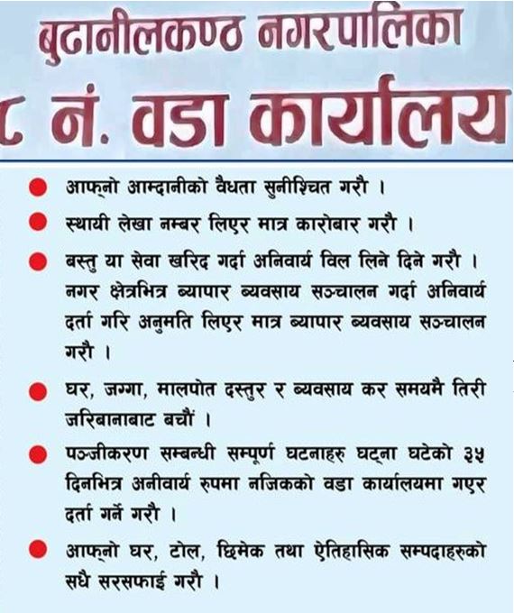 काठमाडौं। बुढानीलकण्ठ नगरपालिका ले काठमाडौँ क्षेत्र नं. ४ र ५ बाट..