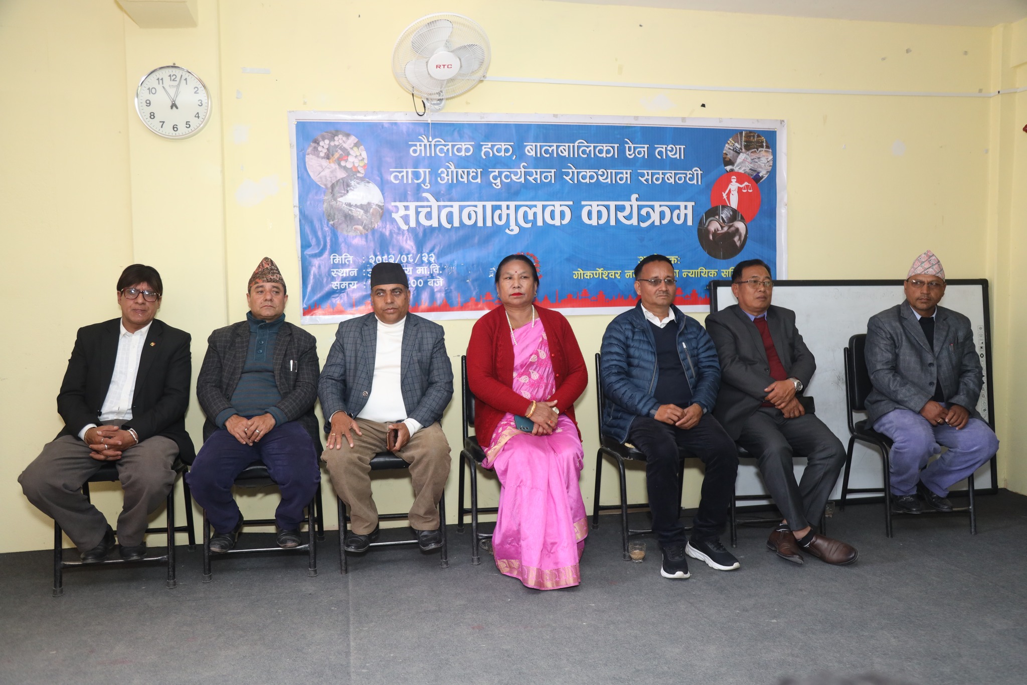 गोकर्णेश्वर नगरपालिकामा बालअधिकार, मौलिक हक तथा लागूऔषध दुरुपयोग रोकथामबारे दोस्रो दिनको सचेतना कार्यक्रम सम्पन्न