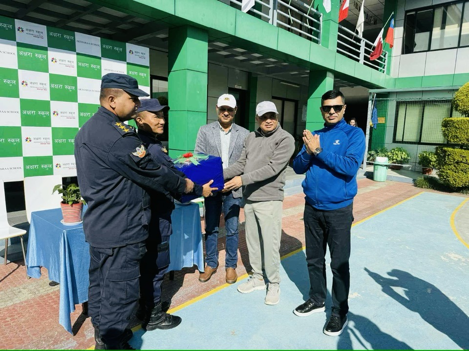 अक्षरा स्कुलद्वारा काँडाघारी प्रहरीलाई रिफ्लेक्टिभ ४५ थान बेल्ट हस्तान्तरण