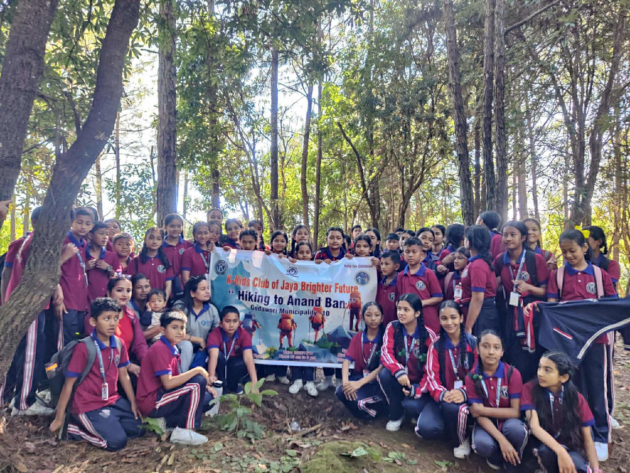 जया ब्राइटर फ्यूचरका के–किड्स क्लबद्वारा आनन्द वन हाइकिङ