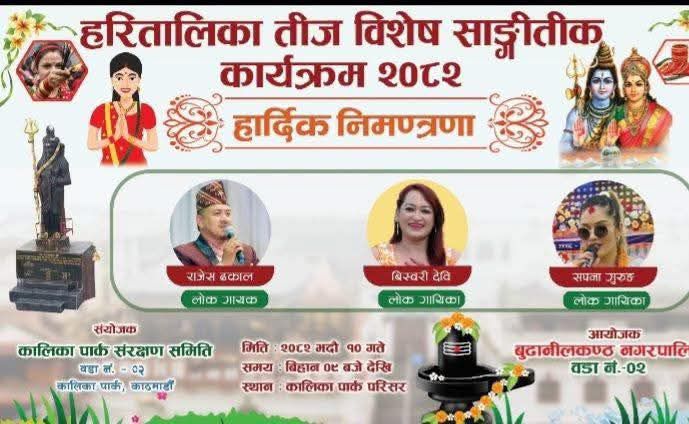 बुढानिलकण्ठ नगरपालिका वडा न २ मा तीज विशेष कार्यक्रम भोलि