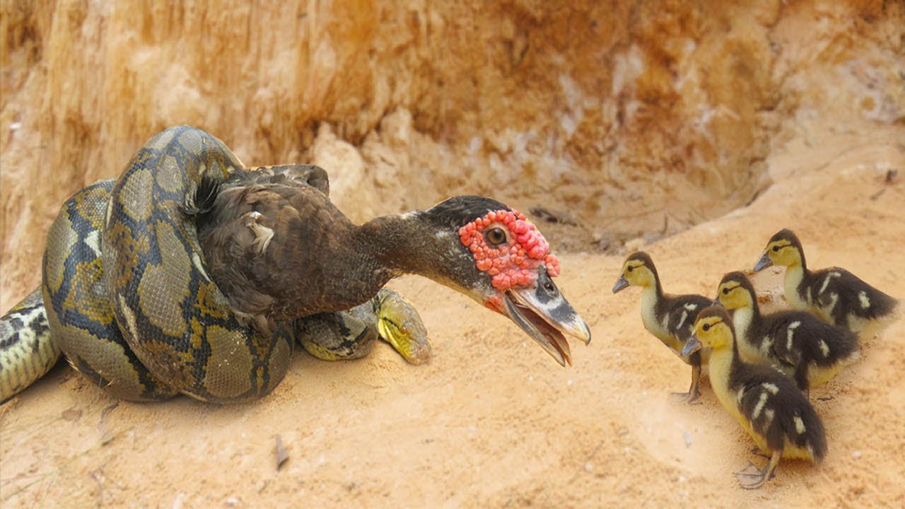 Primitive Man Saves Family Duck From Python Attack -Amazing rescue animal