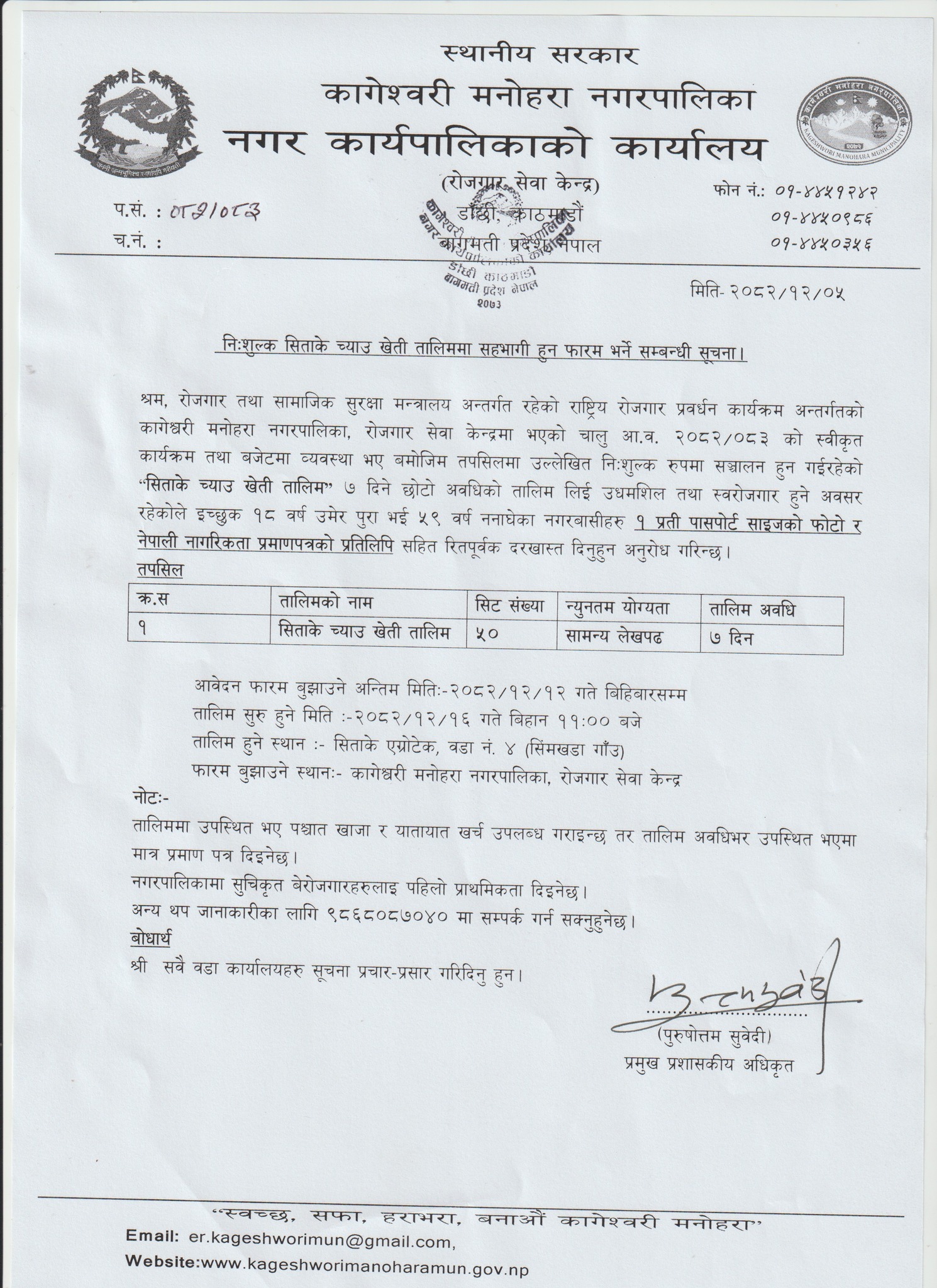 निशुल्क सिताके च्याउ खेती तालिमका लागि आवेदन खुला