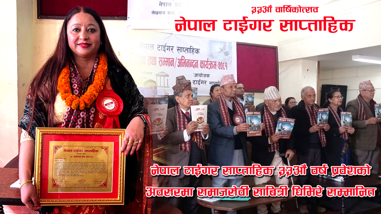 नेपाल टाईगर साप्ताहिक ३३औं वर्ष प्रवेशको अवसरमा समाजसेवी साबित्री घिमिरे सम्मानित