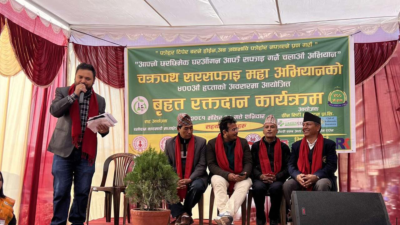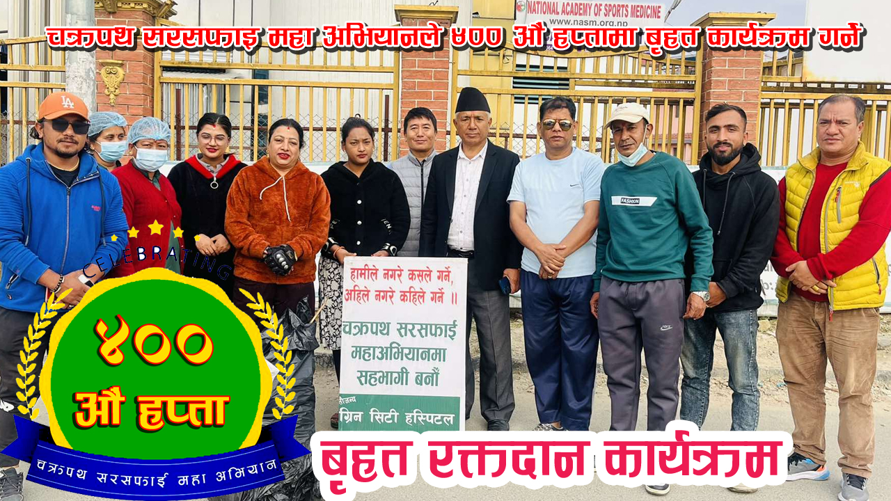 चक्रपथ सरसफाइ महा अभियानको ४०० औं हप्ता पुरा भएको अवसरमा आयोजित रक्तदान कार्यक्रममा १५१ प्रिन्ट रगत संकलन