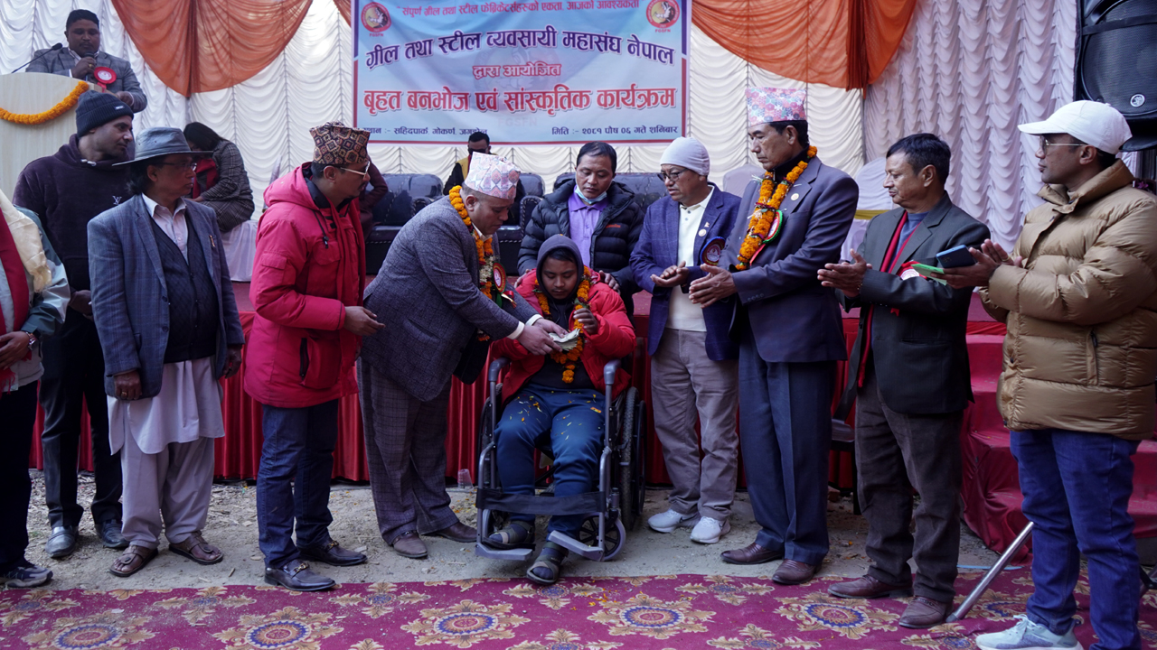 ग्रील र स्टील व्यवसायी महासंघको सहयोग: घाइते मनिष गुरुङलाई १,१०,००० रुपैयाँ राहत