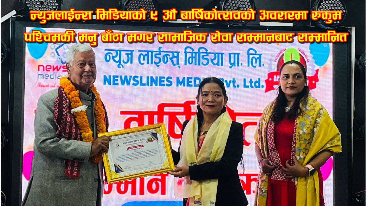 न्युजलाईन्स मिडियाको ९ औ बार्षिकोत्सवको अवसरमा रुकुम पश्चिमकी मनु बाँठा मगर सामाजिक सेवा सम्मान बाट सम्मानित