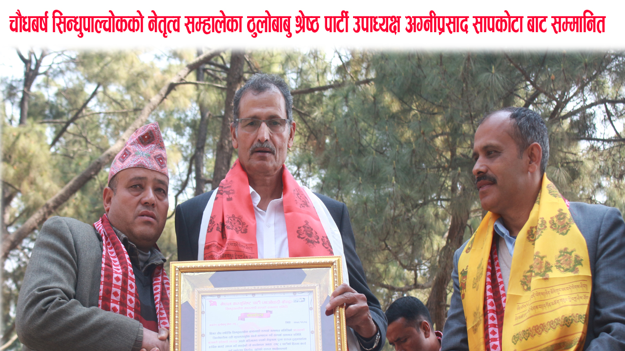 चौधबर्ष सिन्धुपाल्चोकको नेतृत्व सम्हालेका ठुलोबाबु श्रेष्ठ पार्टी उपाध्यक्ष अग्नीप्रसाद सापकोटा बाट सम्मानित