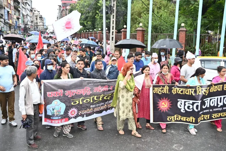 काठमाडौं । प्रमुख प्रतिपक्षी दल नेकपा (एमाले) ले सरकारविरुद्ध आज प्रदर्शन गरेको छ । सरकारको अकर्मण्यताको कारण मुलुकमा महँगी र भ्रष्टाचार बढेको भन्दै एमालेले प्रदर्शन गरेको हो ।