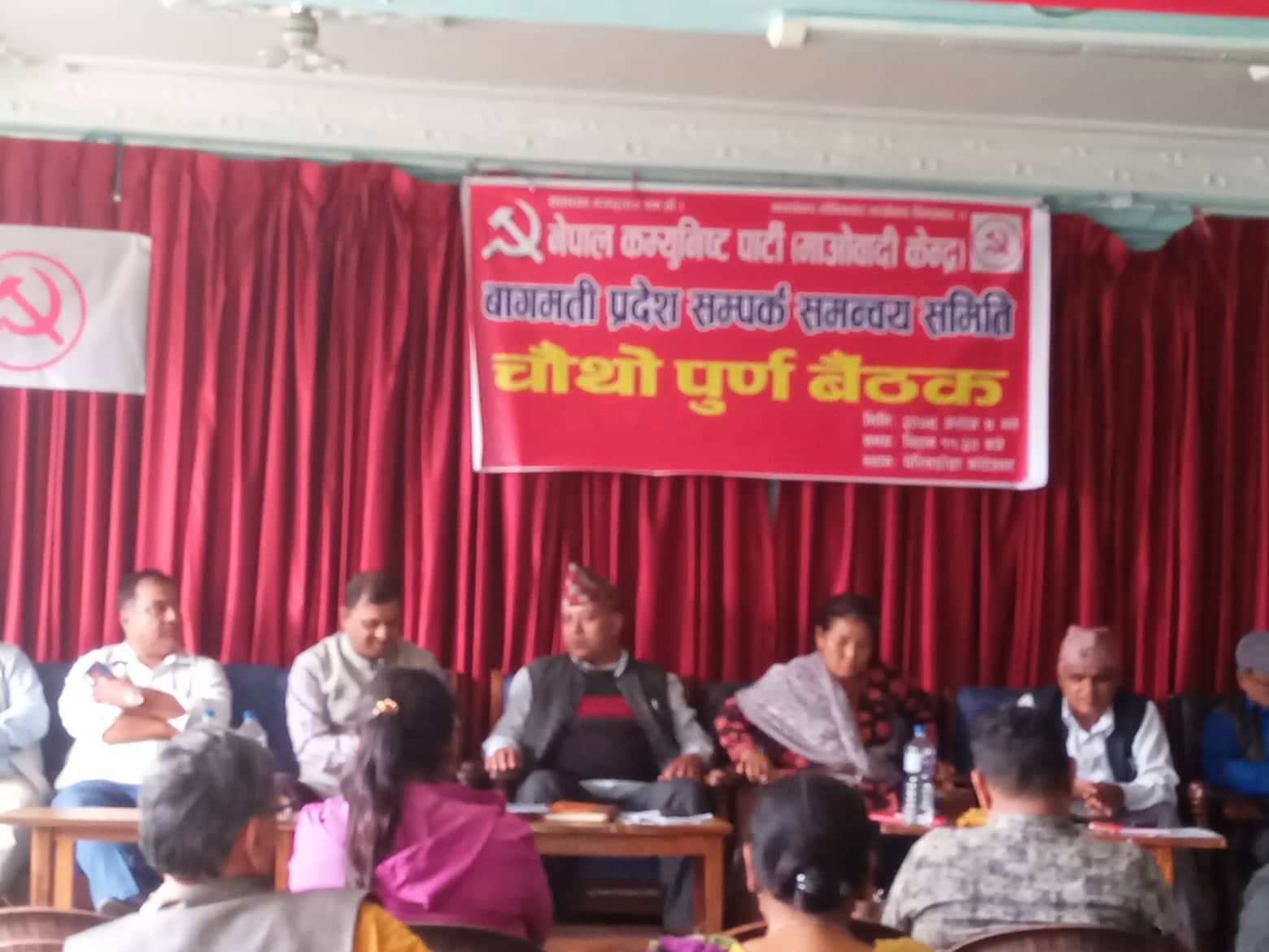 समितिको अध्यक्ष ठुलोबाबु श्रेष्ठको अध्यक्षतामा बसेको सम्पर्क समन्वय समिति बागमती प्रदेशको चौथो पुर्ण बैठकलाई प्रदेश समितिका ईन्चार्ज तथा पार्टीका केन्द्रीय सचिव डिलाराम आचार्यले पनि सम्बोधन गर्नुभएको थियो ।