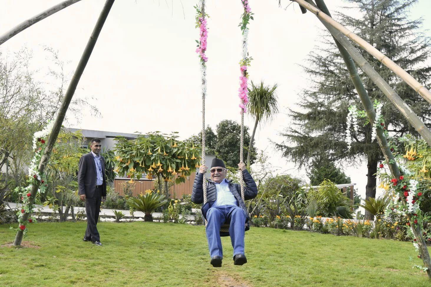 रिसोर्टमा ओलीले काठमाडौं उपत्यकाको दृश्यलोकन गर्नुका साथै पिङ समेत खेलेका थिए ।