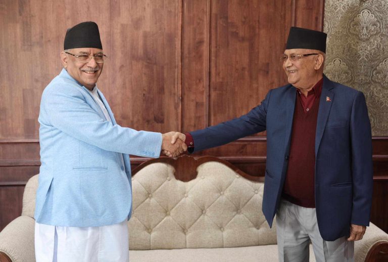 काठमाडौं । आसन्न राष्ट्रिय सभा निर्वाचनमा आफूहरुलाई शून्य नबनाइदिन नेकपा (एमाले) अध्यक्ष केपी शर्मा ओलीले प्रधानमन्त्री पुष्पकमल दाहाल ‘प्रचण्ड’ सँग आग्रह गरेका छन् । नेकपा (एकीकृत समाजवादी) का नेता राजेन्द्रप्रसाद पाण्डेले प्रधानमन्त्री प्रचण्डसँग एमाले अध्यक्ष ओलीले आफूहरुलाई पनि राष्ट्रिय सभामा केही सिट दिन भनेपछि एमालेलाई पनि सहभागी गराउने गरी छलफल भएको दाबी गरे ।