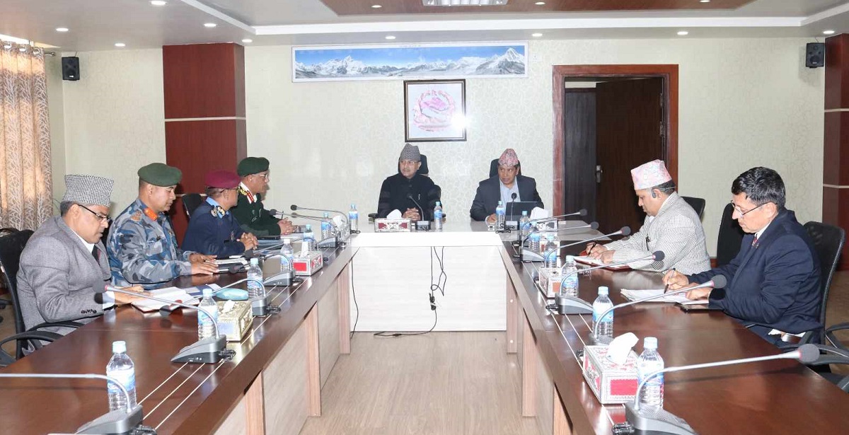 रक्षामन्त्रीसमेत रहेका खड्कालाई सहभागी पदाधिकारीहरूले आगामी माघ ११ गते हुने राष्ट्रिय सभा निर्वाचनको सुरक्षा तयारी र देशको समग्र शान्ति सुरक्षाको अवस्थाबारे जानकारी गराएका हुन्।