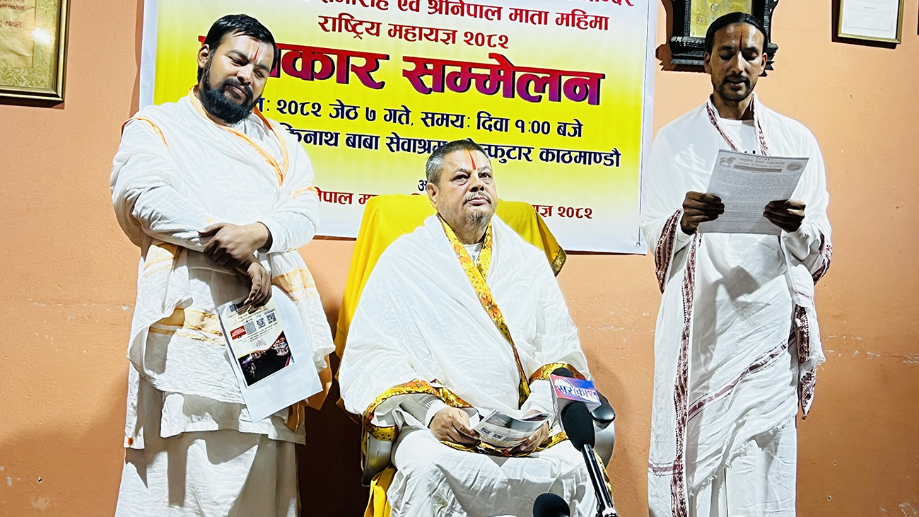 काठमाडौं। काठमाडौंको शंखरापुरमा यही जेठ १४ देखि २५ गतेसम्म महायज्ञ हुने भएको छ । महायज्ञ समितिका अनुसार सोही अवसरमा शंखरापुर नगरपालिका-५, इटाखेलमा नेपालआमा श्रीमन्दिरको उद्घाटन पनि हुनेछ ।