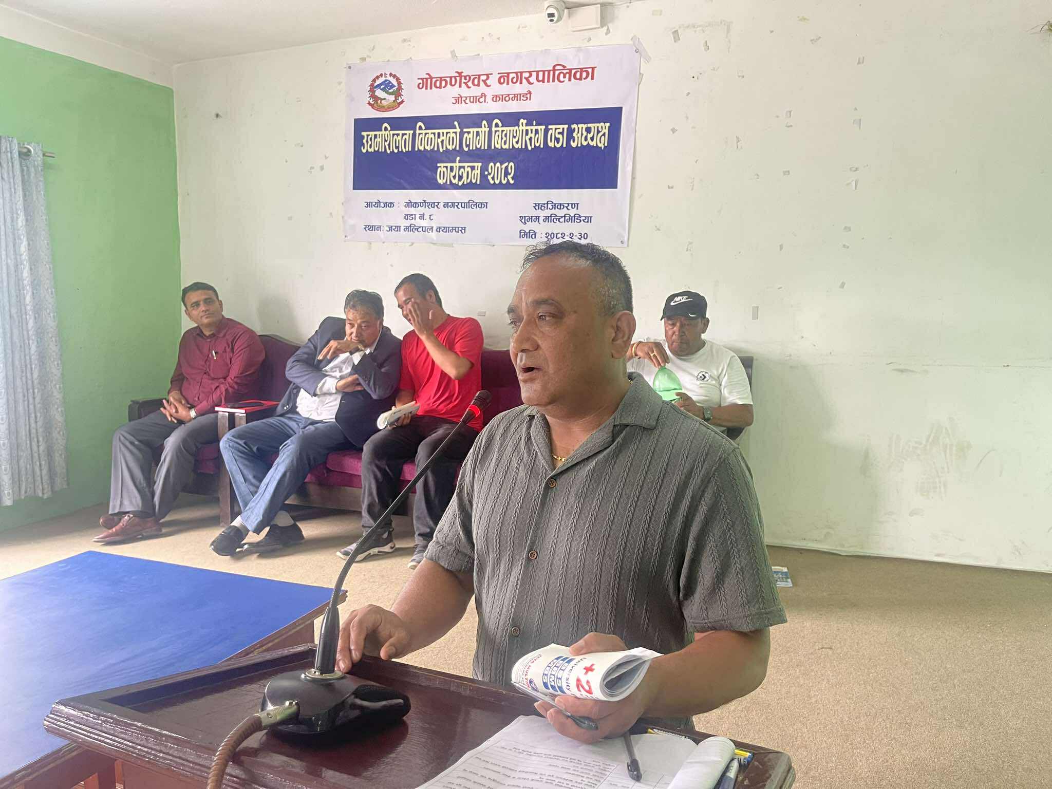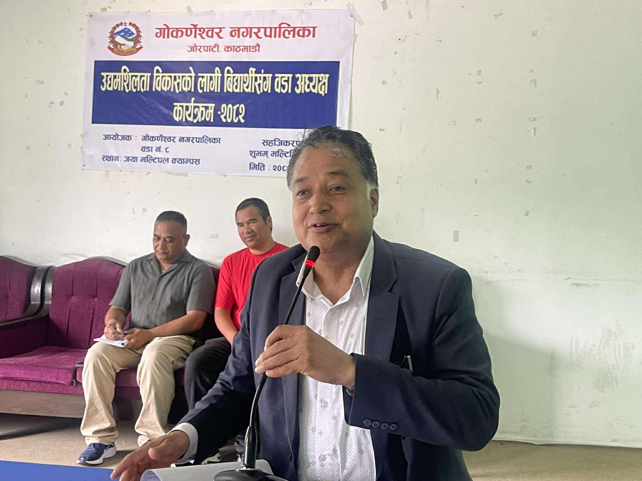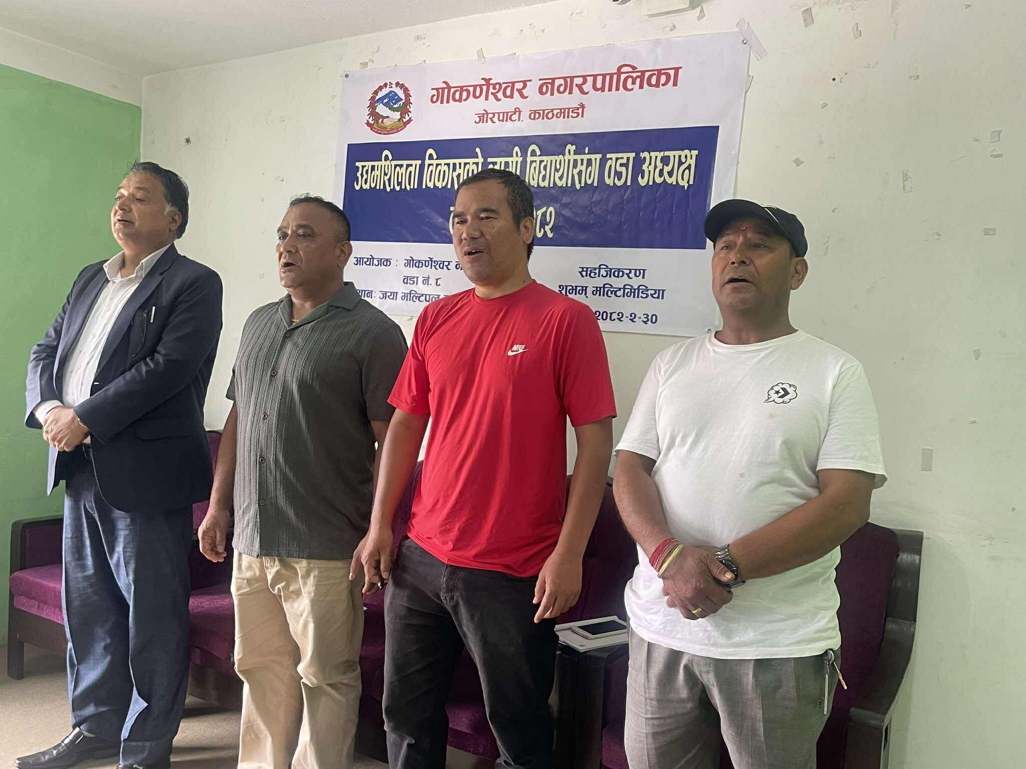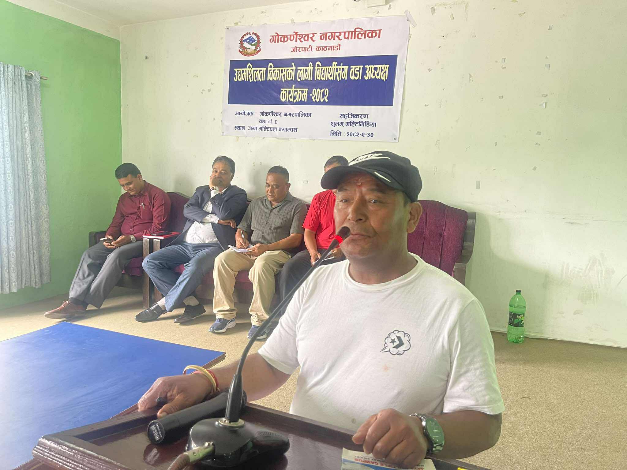काठमाडौँ । गोकर्णेश्वर नगरपालिका वडा नं. ८ को आयोजना र शुभम मल्टिमिडियाको सहजीकरणमा उद्यमशिलता बिकासको लागि बिद्यार्थीसंग वडा अध्यक्ष कार्यक्रम सम्पन्न भएको छ।