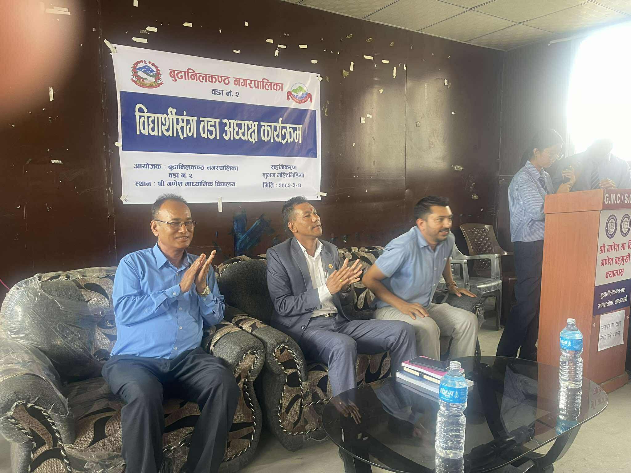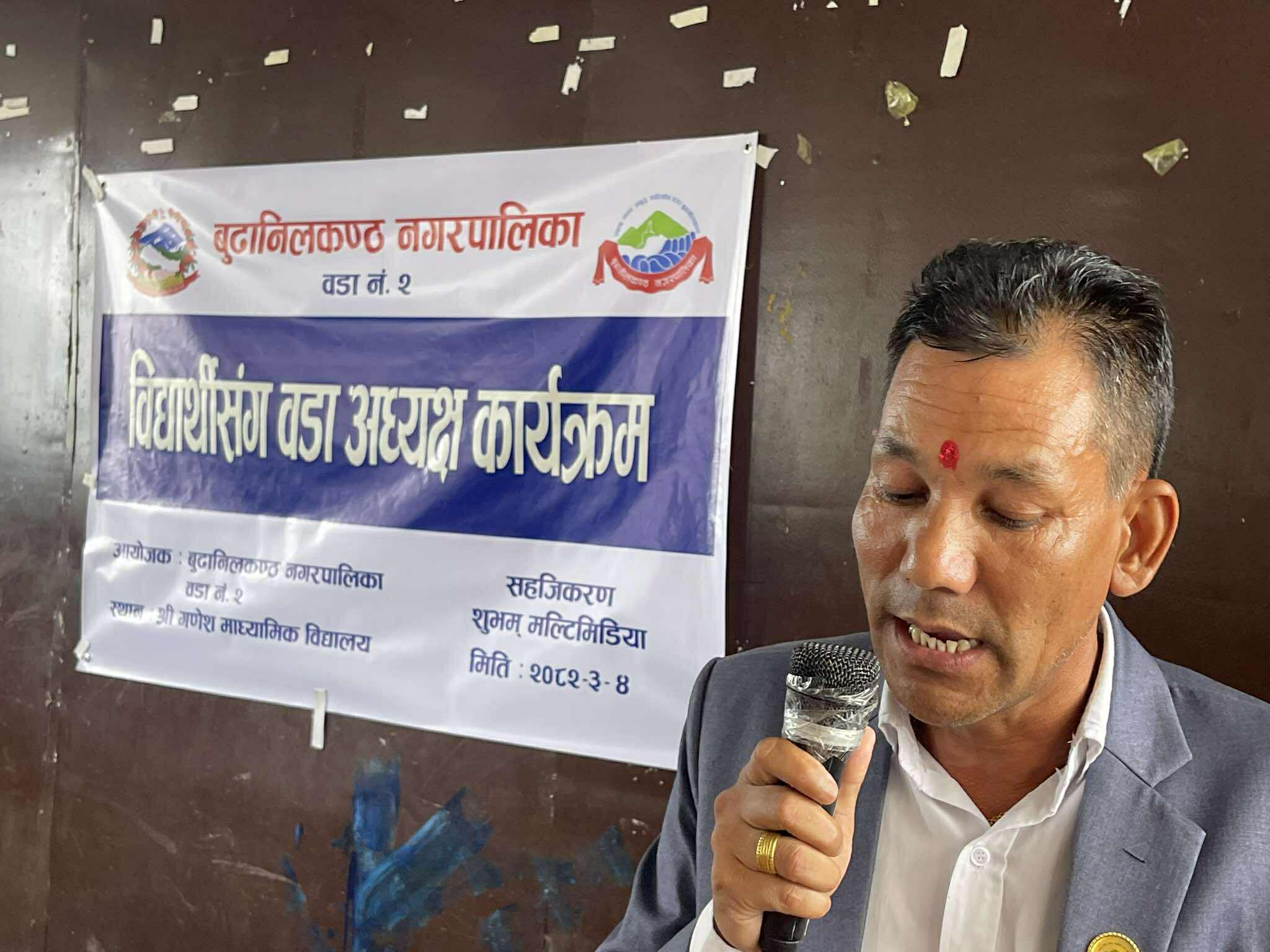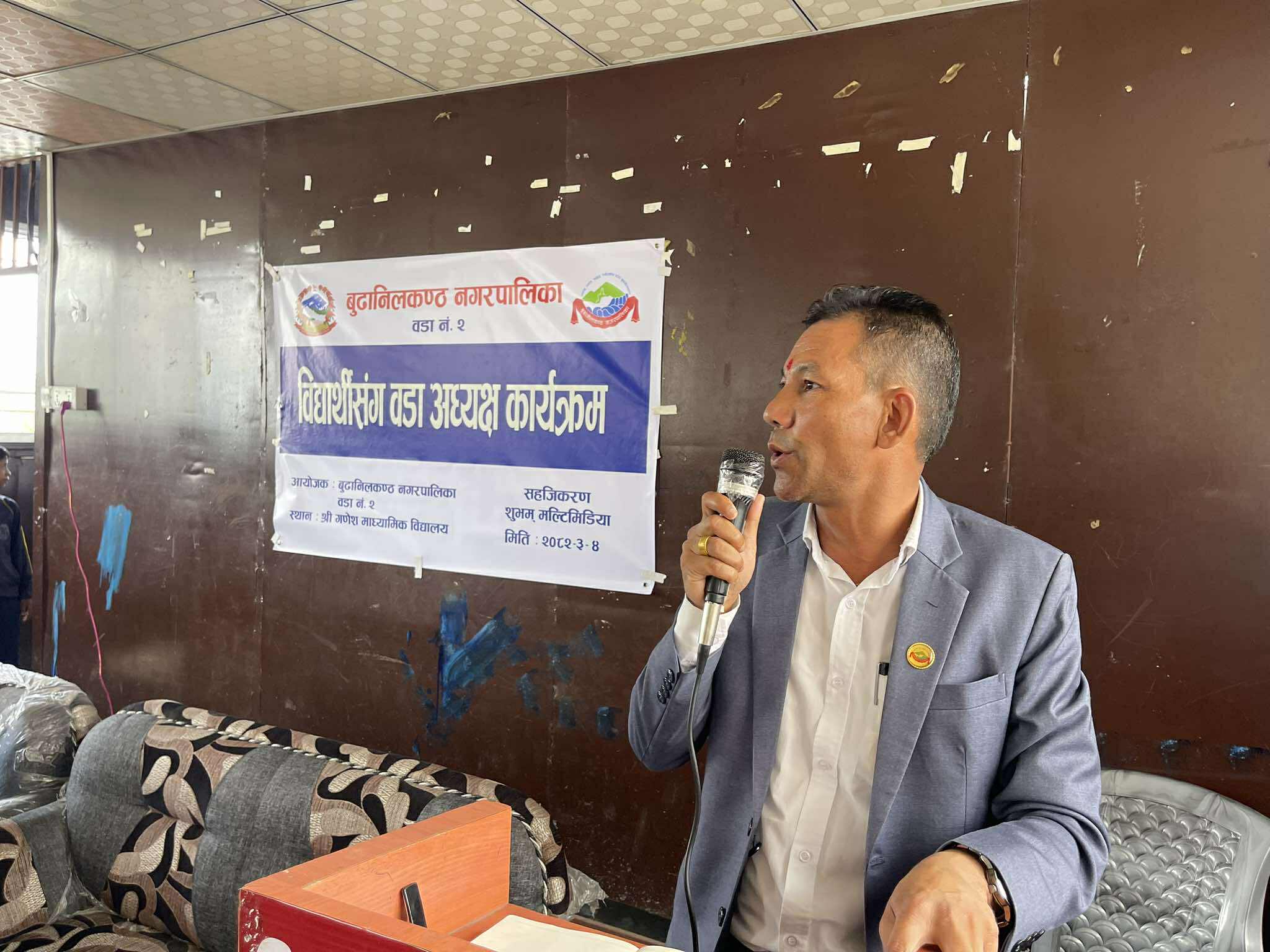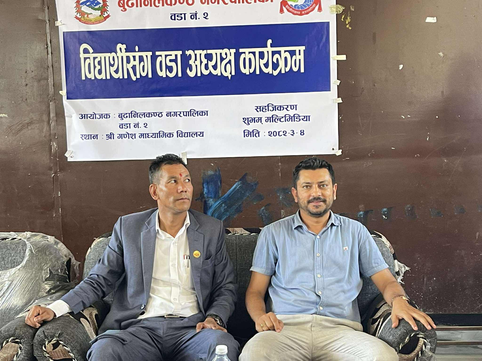 काठमाडौँ । बुढानिलकण्ठ नगरपालिका वडा नं. २ को आयोजना र शुभम मल्टिमिडियाको सहजीकरणमा बिद्यार्थीसंग वडा अध्यक्ष कार्यक्रम सम्पन्न भएको छ।