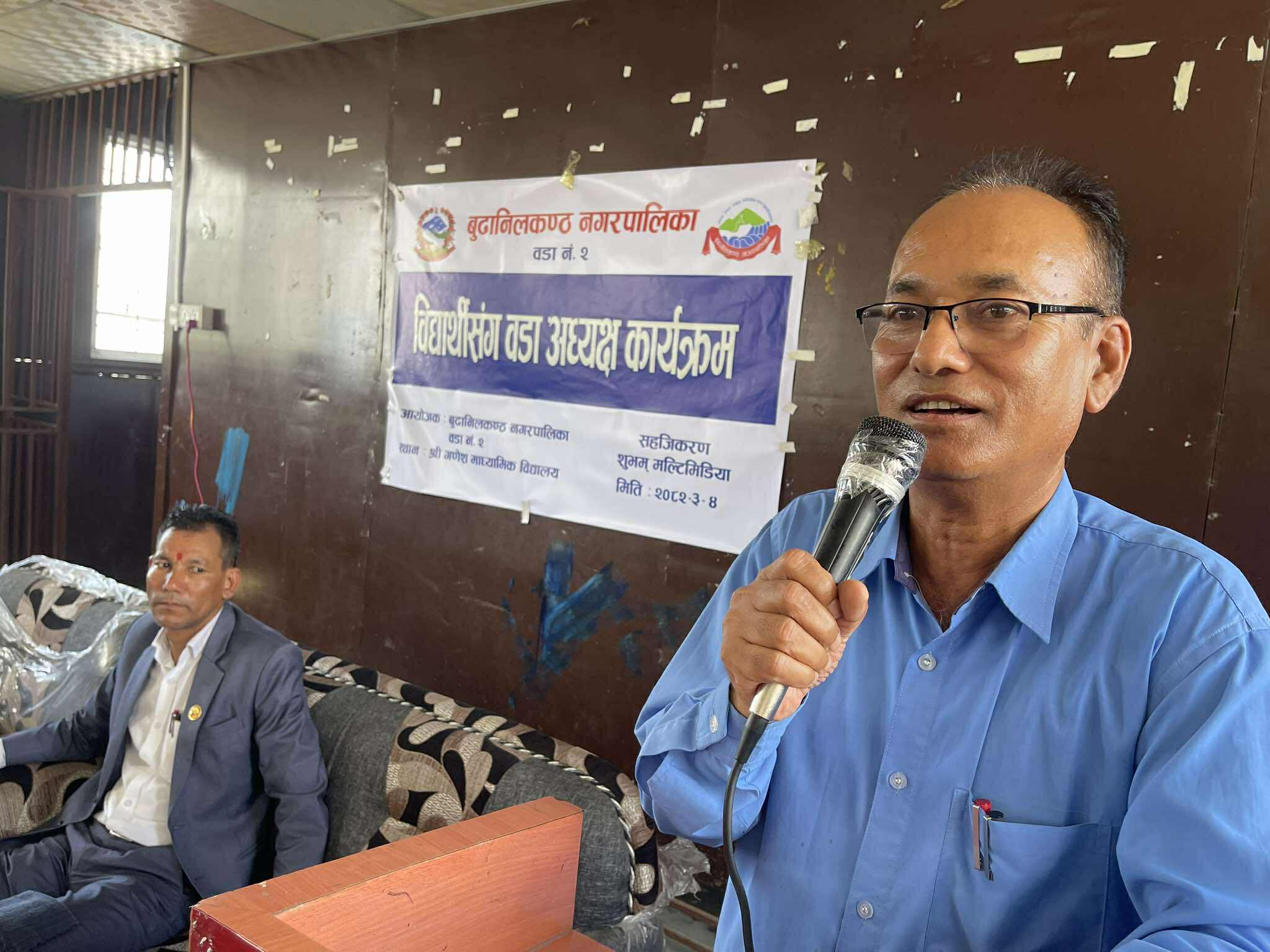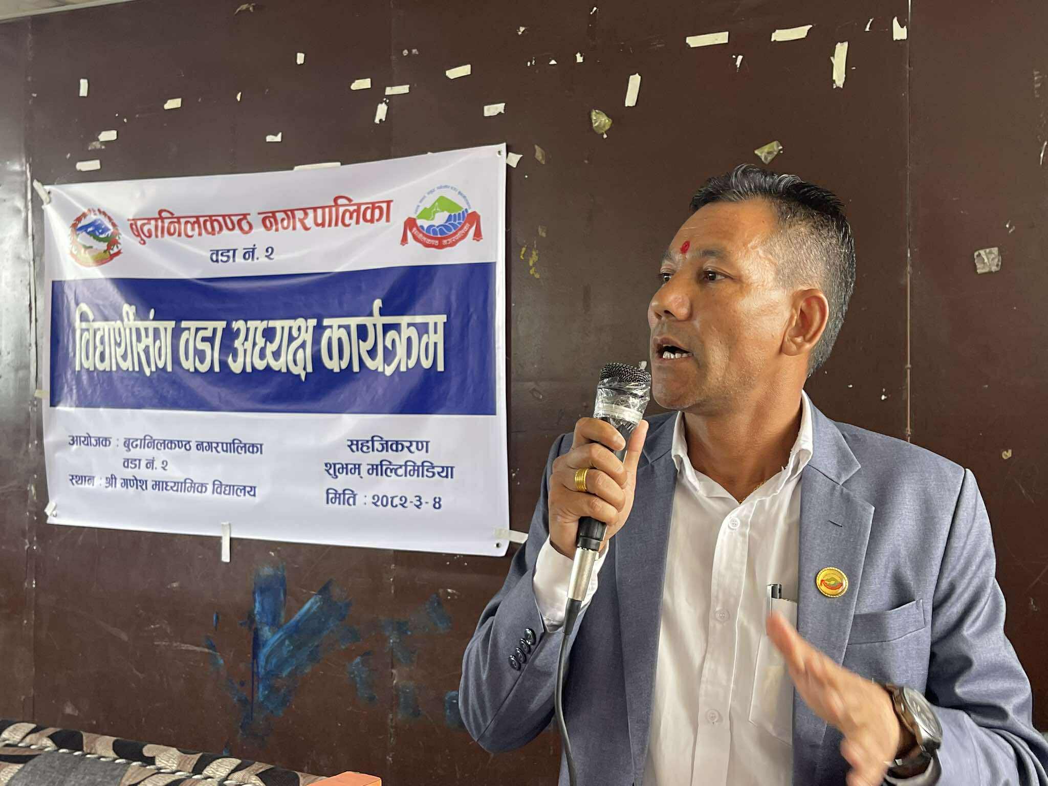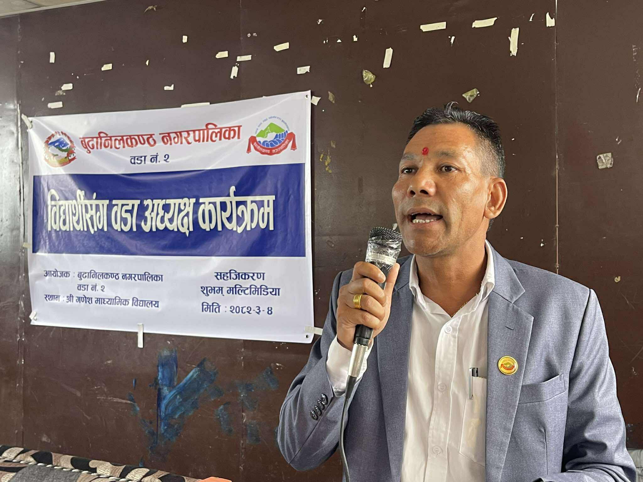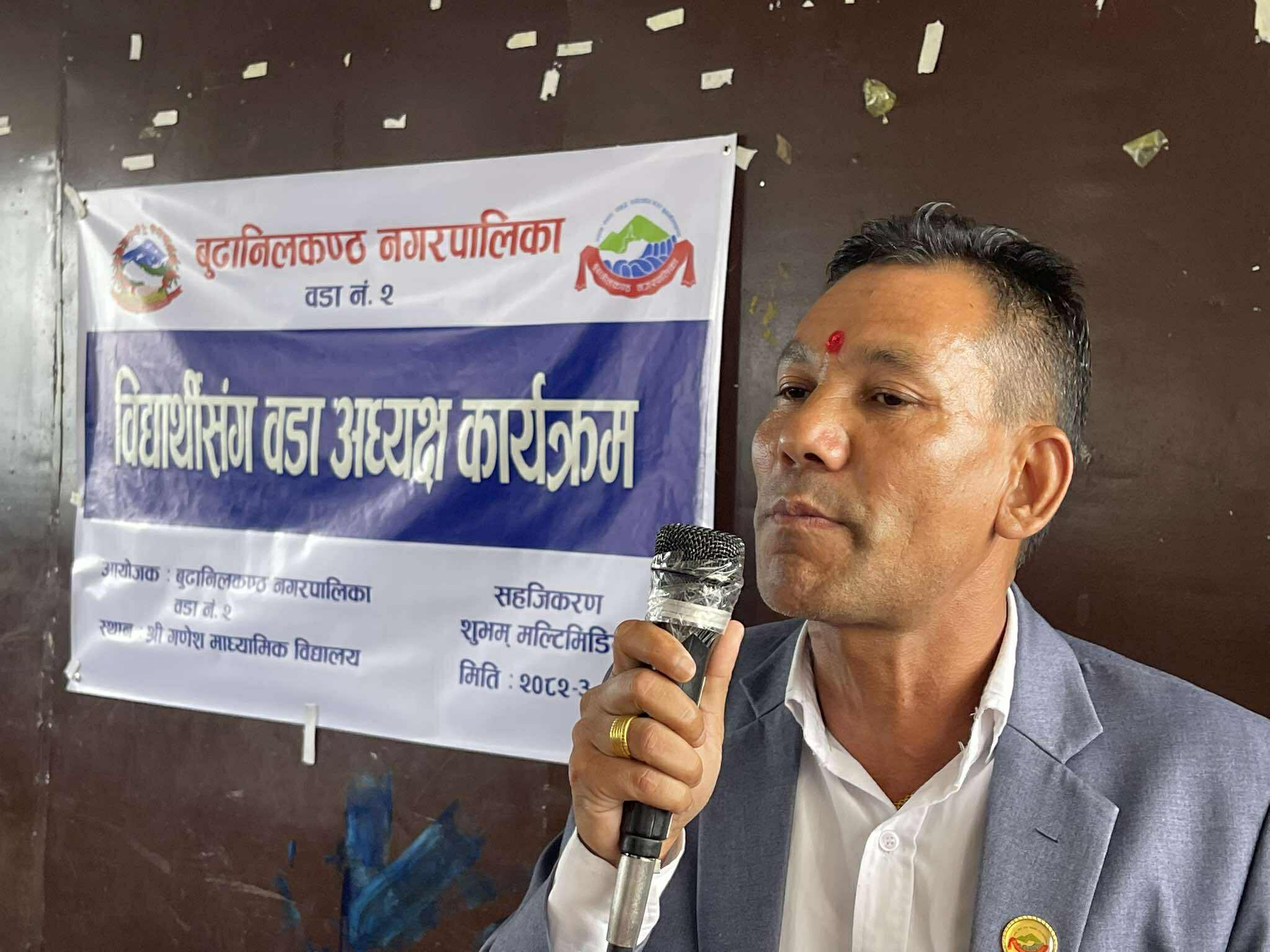 काठमाडौँ । बुढानिलकण्ठ नगरपालिका वडा नं. २ को आयोजना र शुभम मल्टिमिडियाको सहजीकरणमा बिद्यार्थीसंग वडा अध्यक्ष कार्यक्रम सम्पन्न भएको छ।