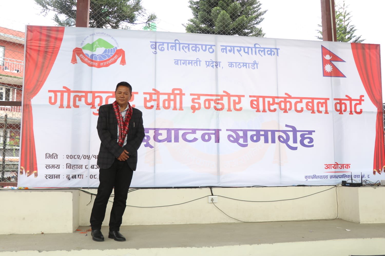 काठमाडौं । बुढानिलकण्ठ नगरपालिका वडा -८ मा गोल्फुटार सेमी इन्डोर बास्केटबल कोर्ट उद्घाटन भएको छ।