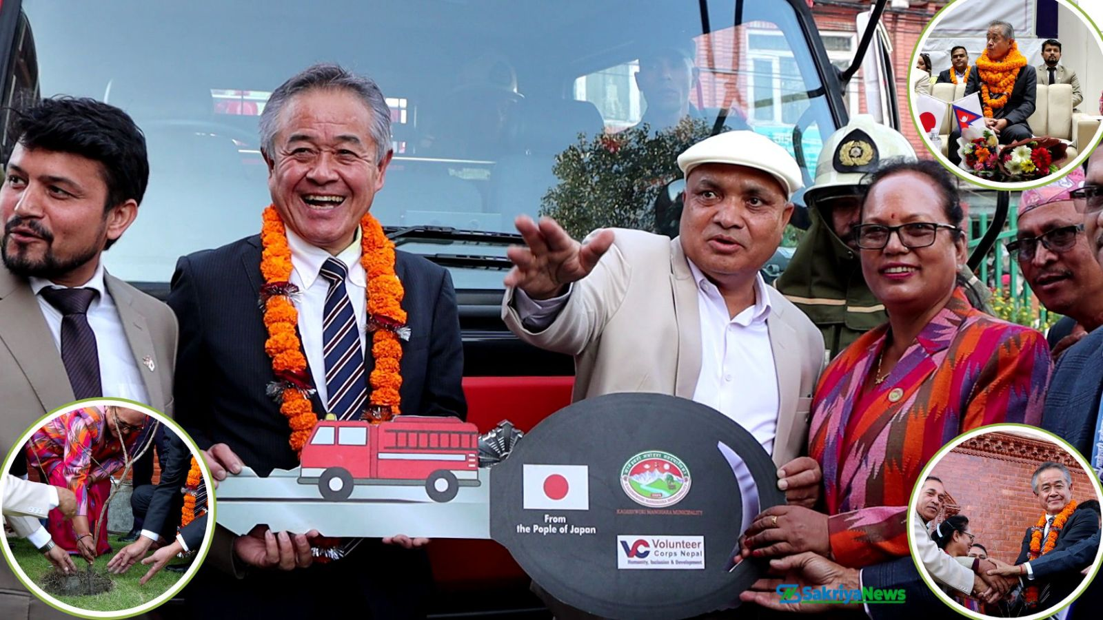 नगरपालिका परिसरमा आज आयोजित एक कार्यक्रमकाबीच ओत्सुकी नगरप्रमुख कोबायासी नोबोयासुले कागेश्वरी मनोहरा नगरप्रमुख उपेन्द्र कार्कीलाई दमकलको साँचो औपचारिक रूपमा हस्तान्तरण गरे।