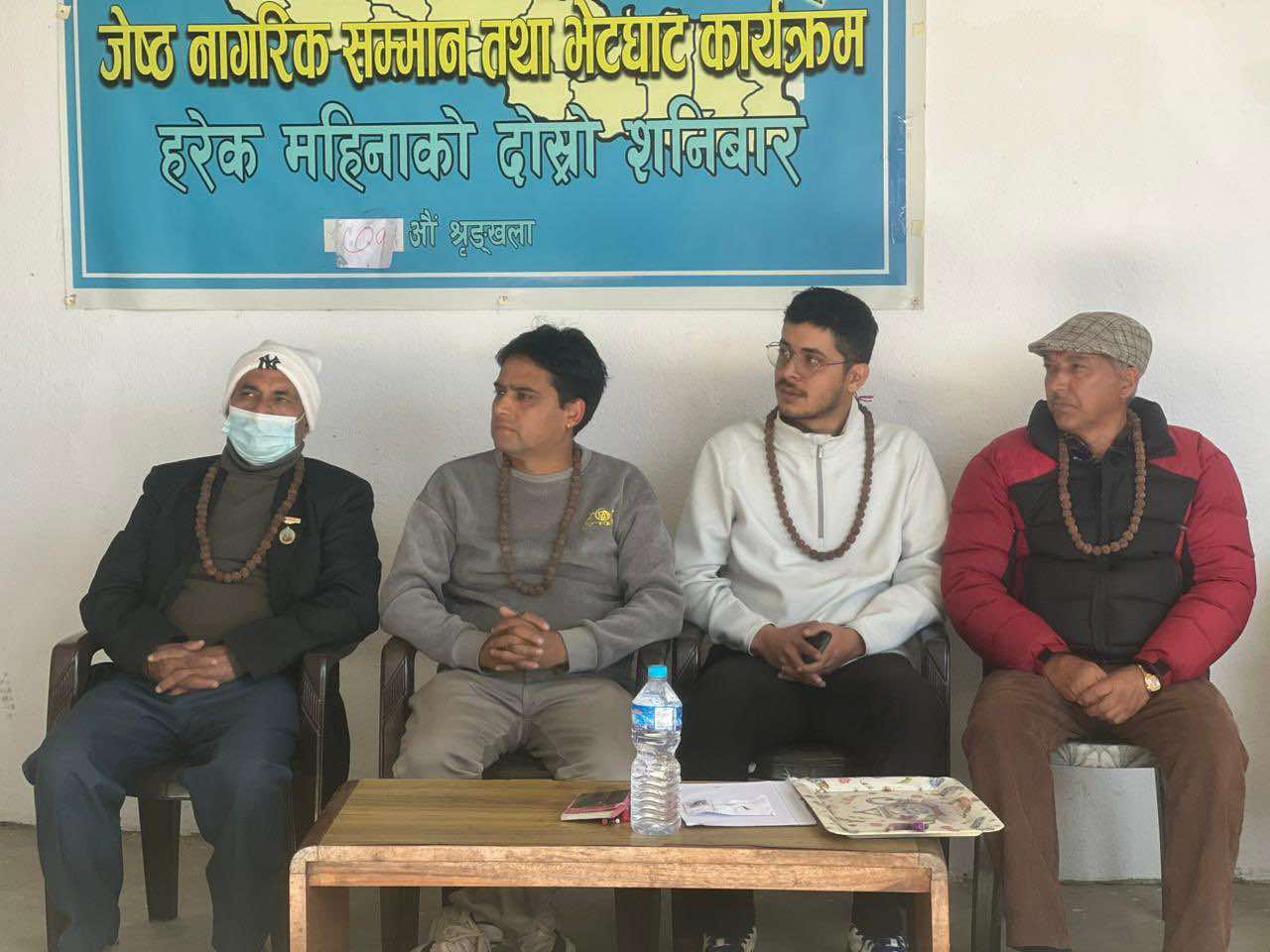काठमाडौँ । गोकर्णेश्वर–८ मा मासिक १०० अभियान नेपाल द्वारा आयोजित जेष्ठ नागरिक भेटघाट तथा सम्मान कार्यक्रमको ७१औँ शृङ्खला सम्पन्न भएको छ। चार पुस्ताबीचको सम्बन्ध सुदृढ गर्ने उद्देश्यले आयोजना गरिएको कार्यक्रममा गाउँ खाने कथा आदानप्रदान, जन्म-महिना महोत्सव तथा विविध सांस्कृतिक गतिविधिहरू सम्पन्न भएका थिए।