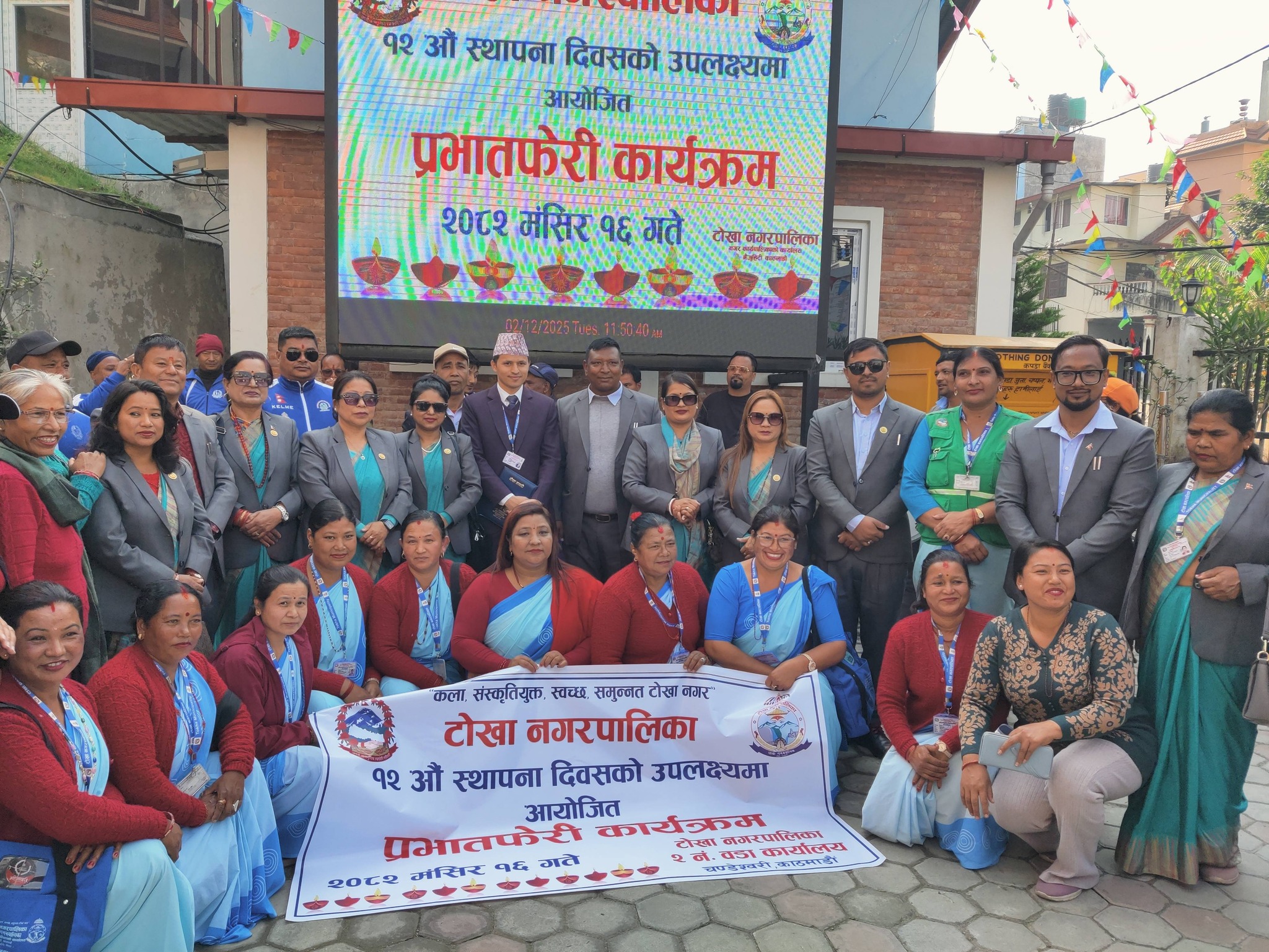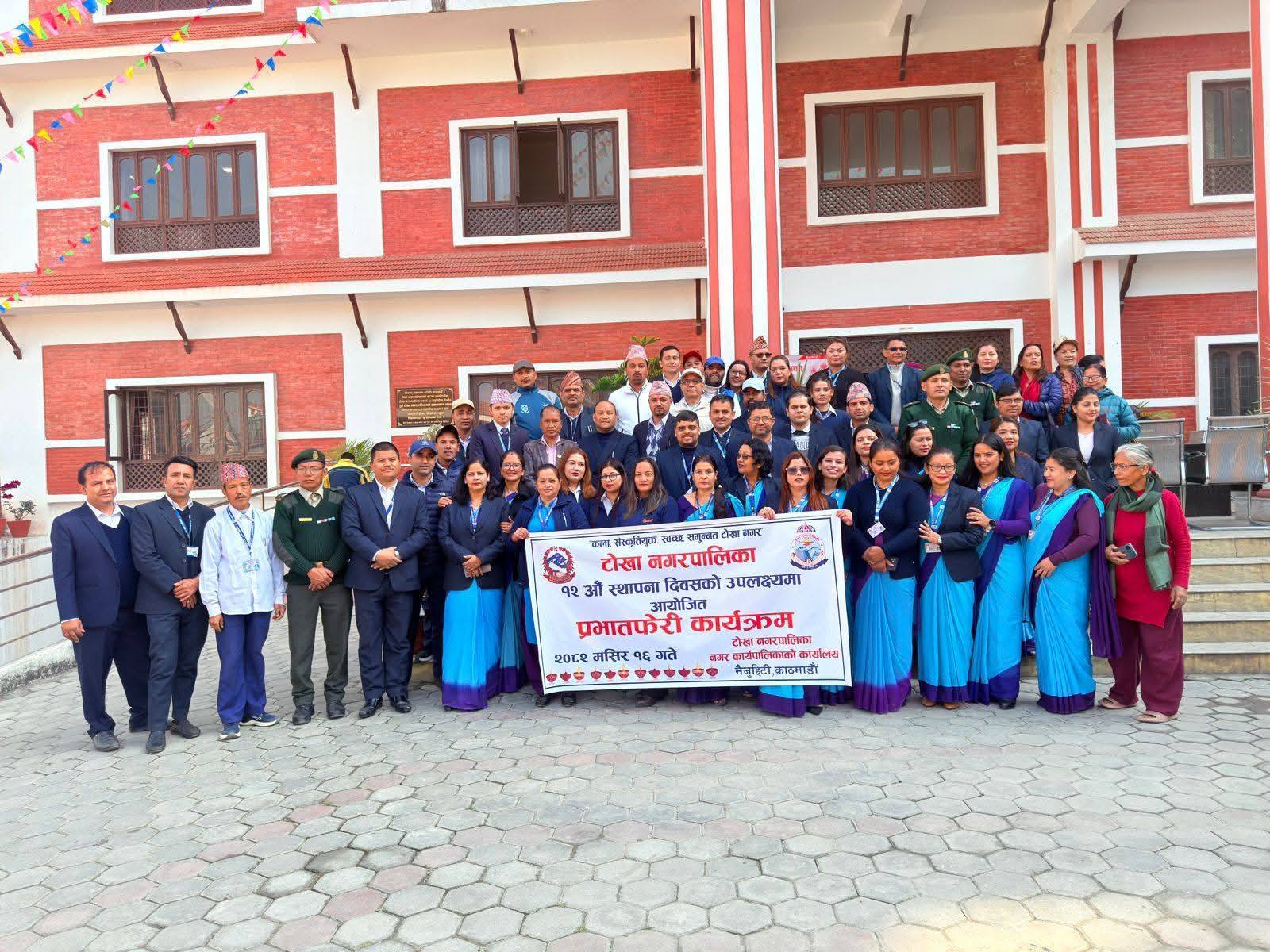 स्थानीय जनप्रतिनिधि, कर्मचारी तथा नगरवासीहरूको उत्साहपूर्ण सहभागितासहित टोखा नगरपालिकाको १२औँ स्थापना दिवस कार्यक्रम सफलतापूर्वक सम्पन्न भएको घोषणा गरिएको थियो।