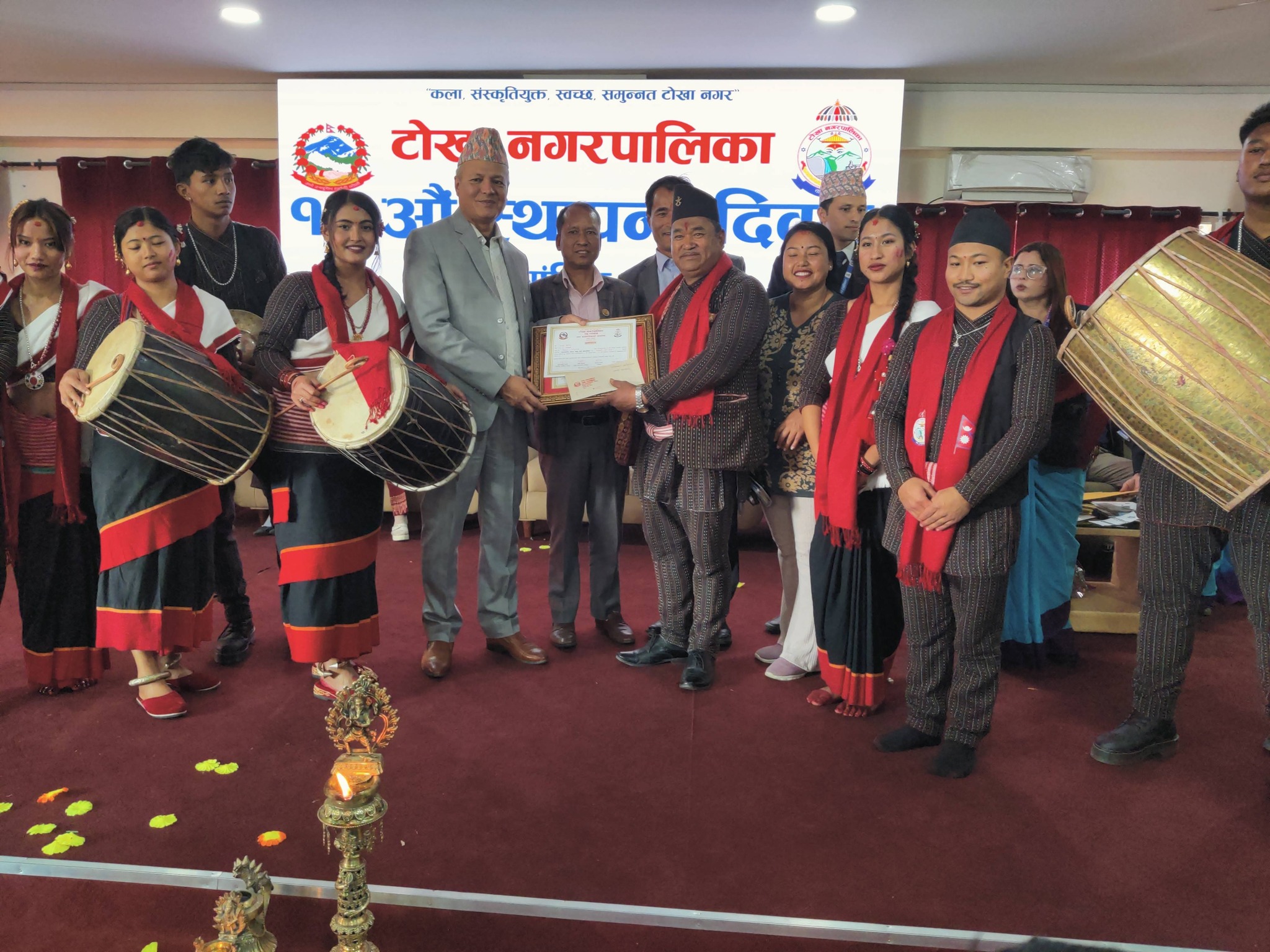 काठमाडौँ । उत्साह, उमंग र सांस्कृतिक विविधतासहित टोखा नगरपालिकाको १२औँ नगर स्थापना दिवस भव्य रूपमा सम्पन्न भएको छ। नगरको विकास यात्रा, उपलब्धि र भविष्यका प्राथमिकताबारे साझा संकल्प व्यक्त गर्ने उद्देश्यले आयोजना गरिएको उक्त कार्यक्रममा स्थानीय जनप्रतिनिधि, कर्मचारी, शिक्षक, विद्यार्थी, समाजसेवी तथा नगरवासीहरूको उल्लेखनीय सहभागिता रहेको थियो।