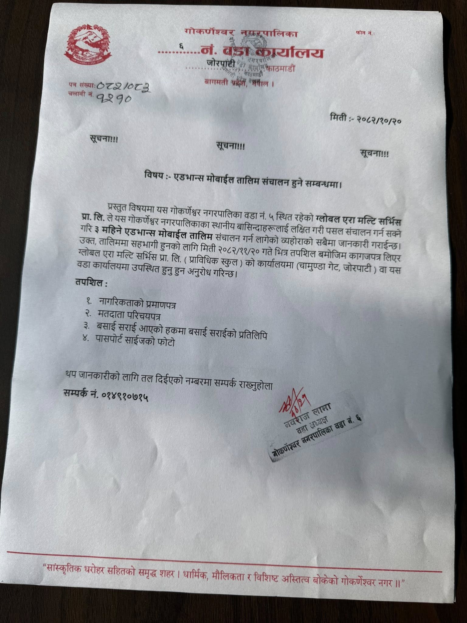 वडा कार्यालयको सूचनाअनुसार, ग्लोबल एसिया मल्टिसर्भिस प्रा.लि.को सहकार्यमा उक्त तालिम सञ्चालन गर्न लागिएको हो। वडा कार्यालयले स्थानीय युवायुवती तथा व्यवसाय गर्न इच्छुक नागरिकलाई लक्षित गरी पसल सञ्चालन गर्न सक्ने सीप विकासका लागि तालिम आयोजना गर्न लागेको जनाएको छ।